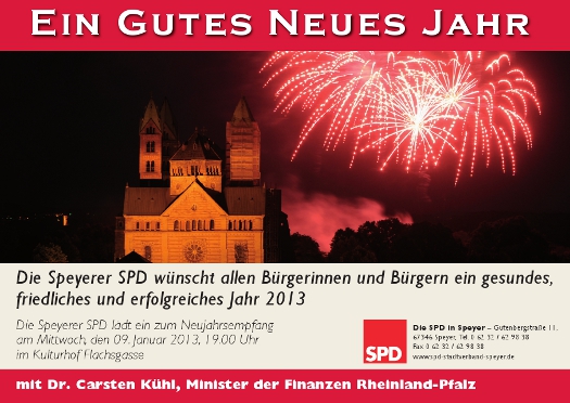Die Speyerer SPD wünscht allen Bürgerinnen und Bürgern ein gesundes, friedliches und erfolgreiches Jahr 2013.